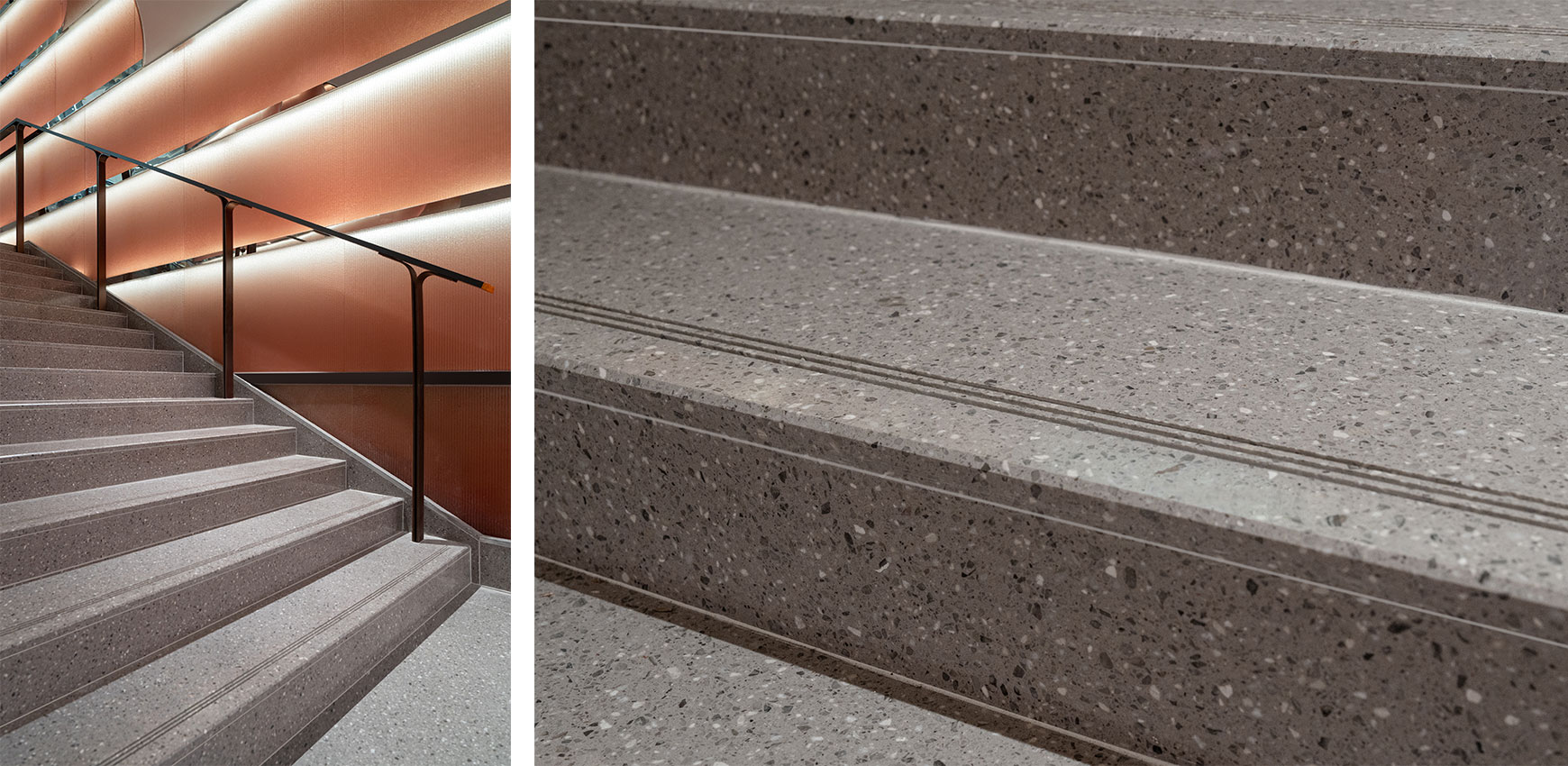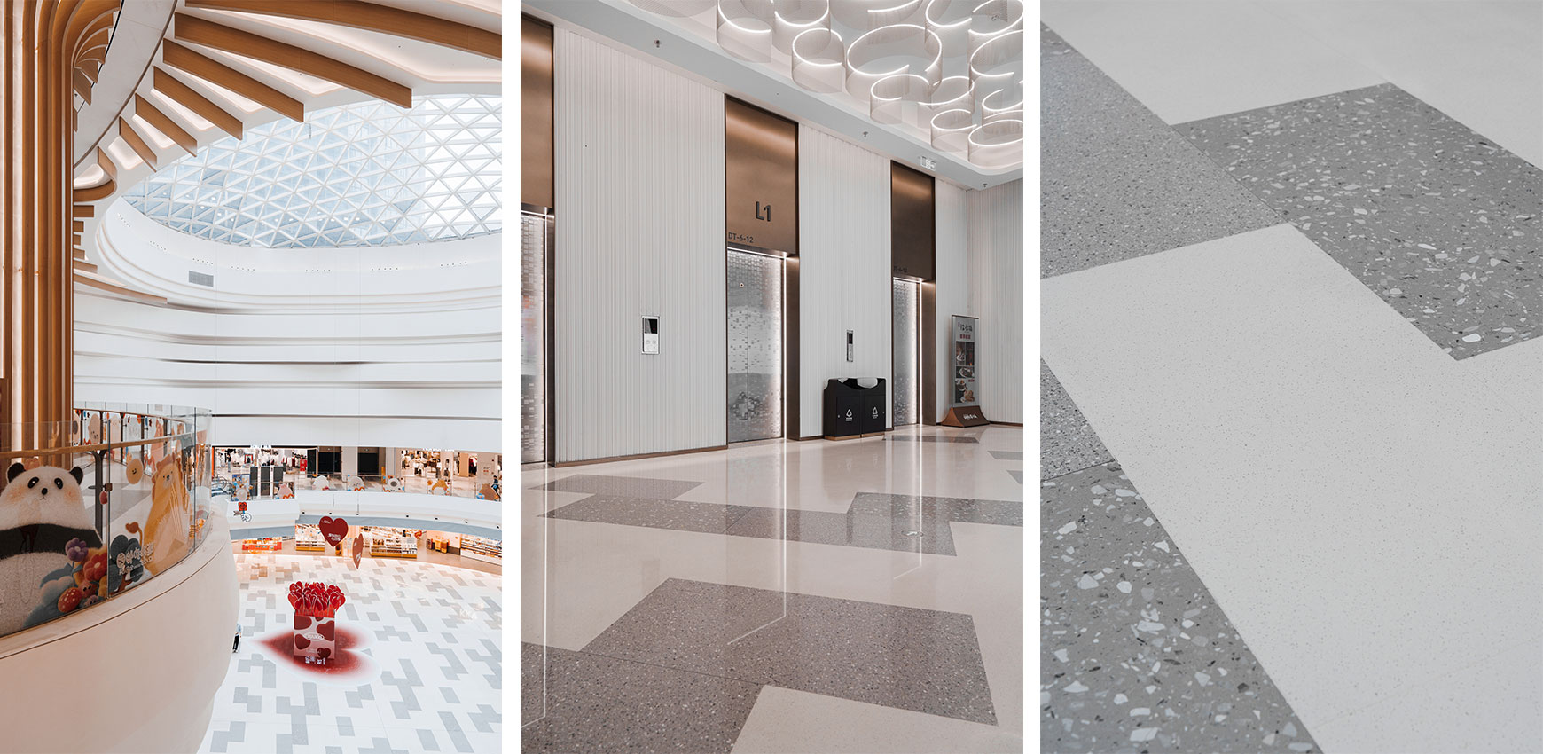 In the Ch'anxi Huancheng Project, the professional team from Dongpeng New Materials provided detailed product selection and color customization services during the early project stages. Through a combination of multiple terrazzo options and "seamless" treatment techniques, they helped create a modern commercial complex that embodies sophistication, cleanliness, and grandeur—meeting the aesthetic demands of contemporary entertainment and consumption spaces. By deeply integrating Dongpeng New Materials' ecological stone, the project incorporates natural concepts and vibrant greenery into its design, actively cultivating a unique five-sense commercial atmosphere characterized by relaxation, rawness, everyday familiarity, social engagement, and ambient mood.