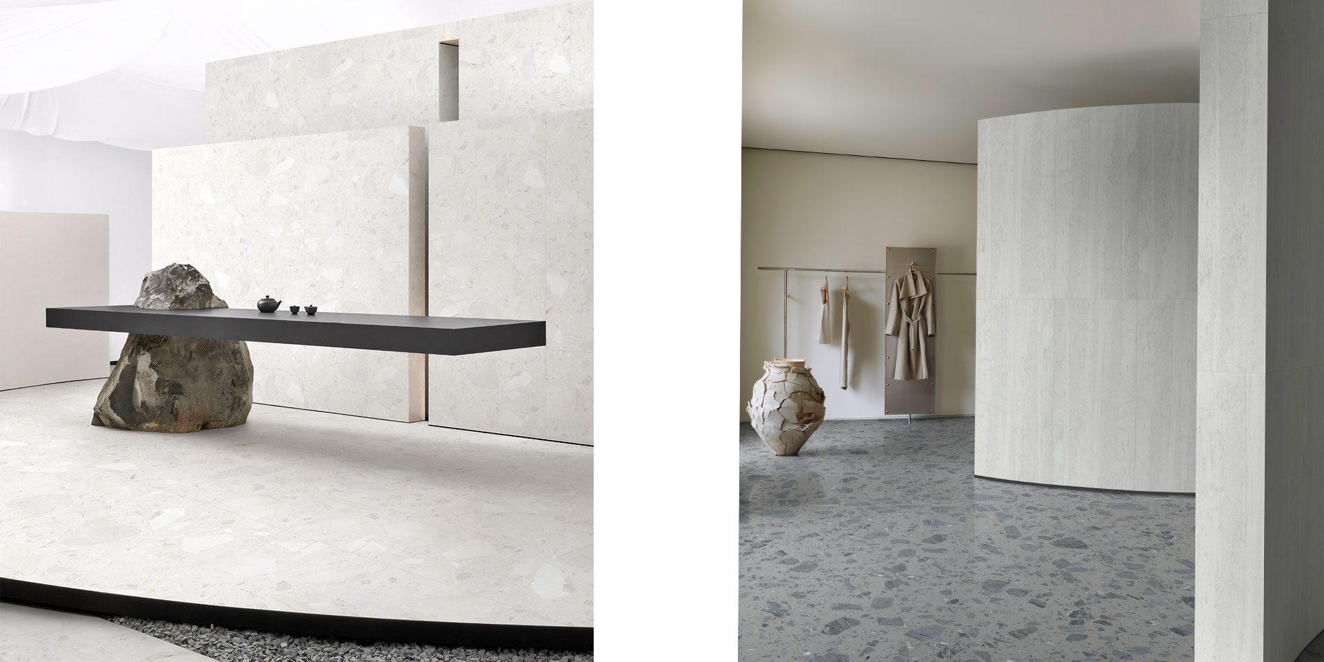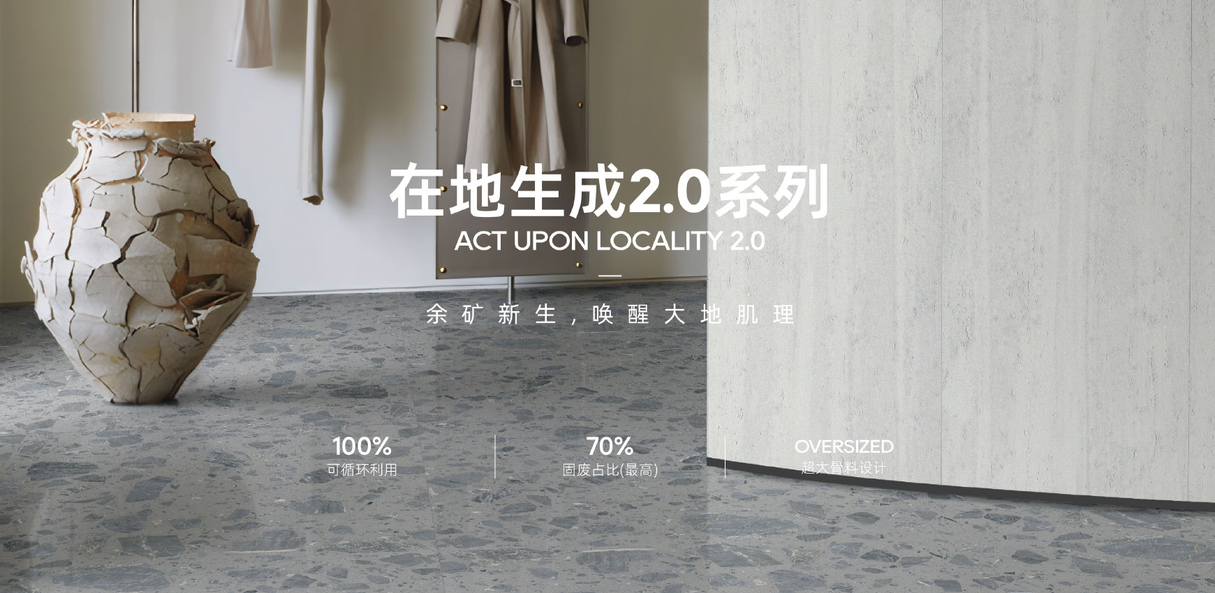 Under "Local Regeneration 2.0," Dongpeng focused its attention on mines within a 100-kilometer radius of Hukou, delving deep into and revitalizing the artistic value of mining remnants. This effort ultimately transformed distinctive materials such as Phantom Gray, Weathered Stone, and White Jade into a product series with a high solid waste content (up to 69%). By integrating local care, artistic heritage, and cutting-edge technology, and through industrial collaboration and process innovation, resource regeneration is achieved. This provides solutions for sustainable urban development, allowing "fragments of the earth" to be reborn.