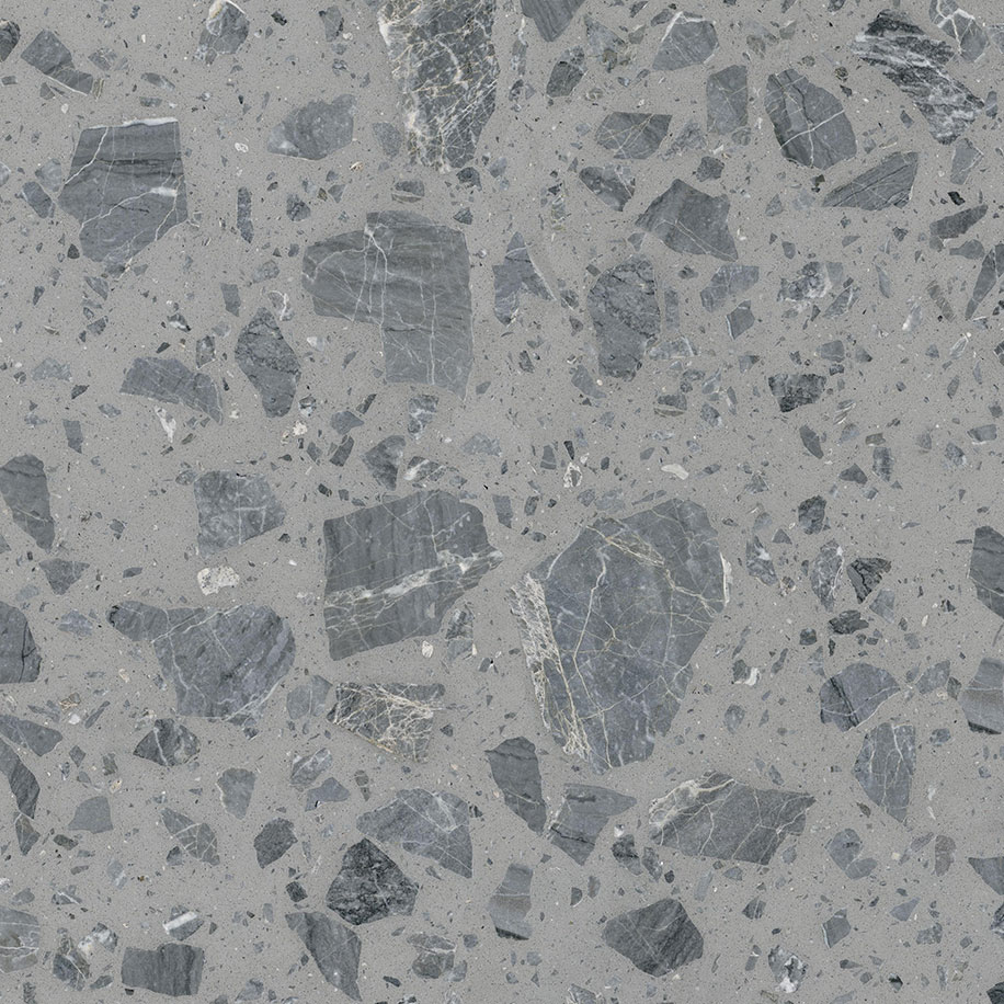 Phantom Grey ore from Ruichang, Jiangxi, is renowned for its distinctive gray-white veining. However, the pursuit of premium stone textures often comes at the cost of discarding ordinary material—vast amounts of surface-layer ore are excavated and abandoned in search of the flawless, high-grade textures found deeper underground. Dongpeng New Materials utilizes uniquely textured Phantom Grey remnants as the primary material, combined with large-aggregate craftsmanship, to highlight the artistic appeal of Phantom Grey stone, achieving a solid waste content of 55%.