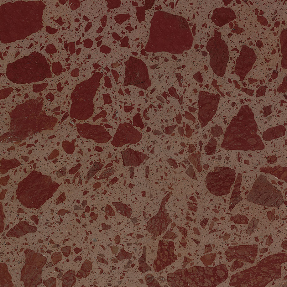 Petrified stone is a product of warm, humid climates and diverse geological conditions. In Pengze County, Jiangxi, there are petrified stone quarries of varying scales, whose extraction processes generate substantial amounts of scraps and waste. These residual materials scatter across fields, causing significant ecological impact. Dongpeng New Materials incorporates petrified stone remnants of different sizes into its products, using oversized aggregates to interpret the unique artistic tension of red petrified stone, with a solid waste content of 48%.