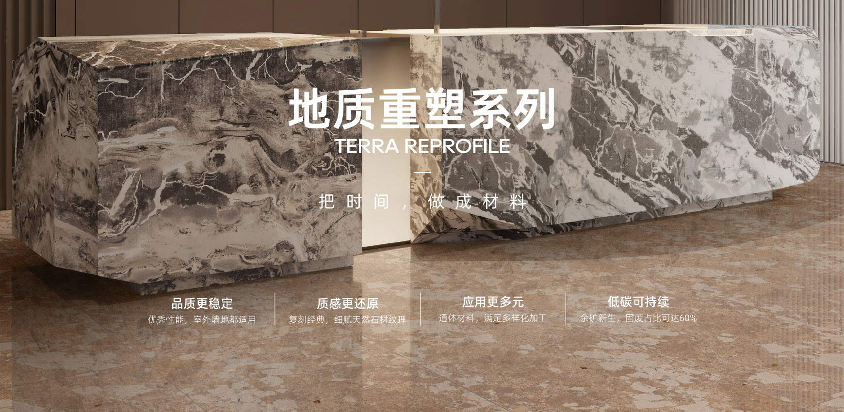 With extensive mining and application, the reserves of natural stone are becoming increasingly scarce. While it is non-renewable, the geological beauty inherent to natural stone can be preserved and passed down. The "Geological Re-creation" series employs innovative techniques to deeply decode the textural patterns of natural stone. Using inorganic materials, it meticulously reconstructs details such as scratches, clusters, granules, and color variations—replacing the sedimentation of eons—to replicate the time-worn, natural texture of stone. Thus, the artistry of time is transformed into material form.