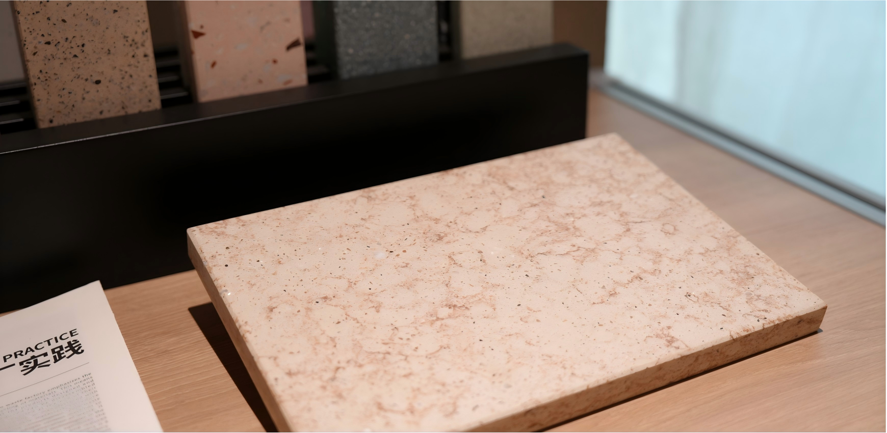 Inorganic artificial stone integrates innovative techniques, employing unique processes such as the dry method and striation to replicate the color, texture, and feel of natural stones like marble and rock.The product utilizes leftover materials from local mining operations, with recycled solid waste accounting for up to 60%. By adopting the form of a low-carbon material, it serves as a sustainable alternative to non-renewable natural stone, continuing the geological narrative spanning billions of years in a more eco-friendly manner.